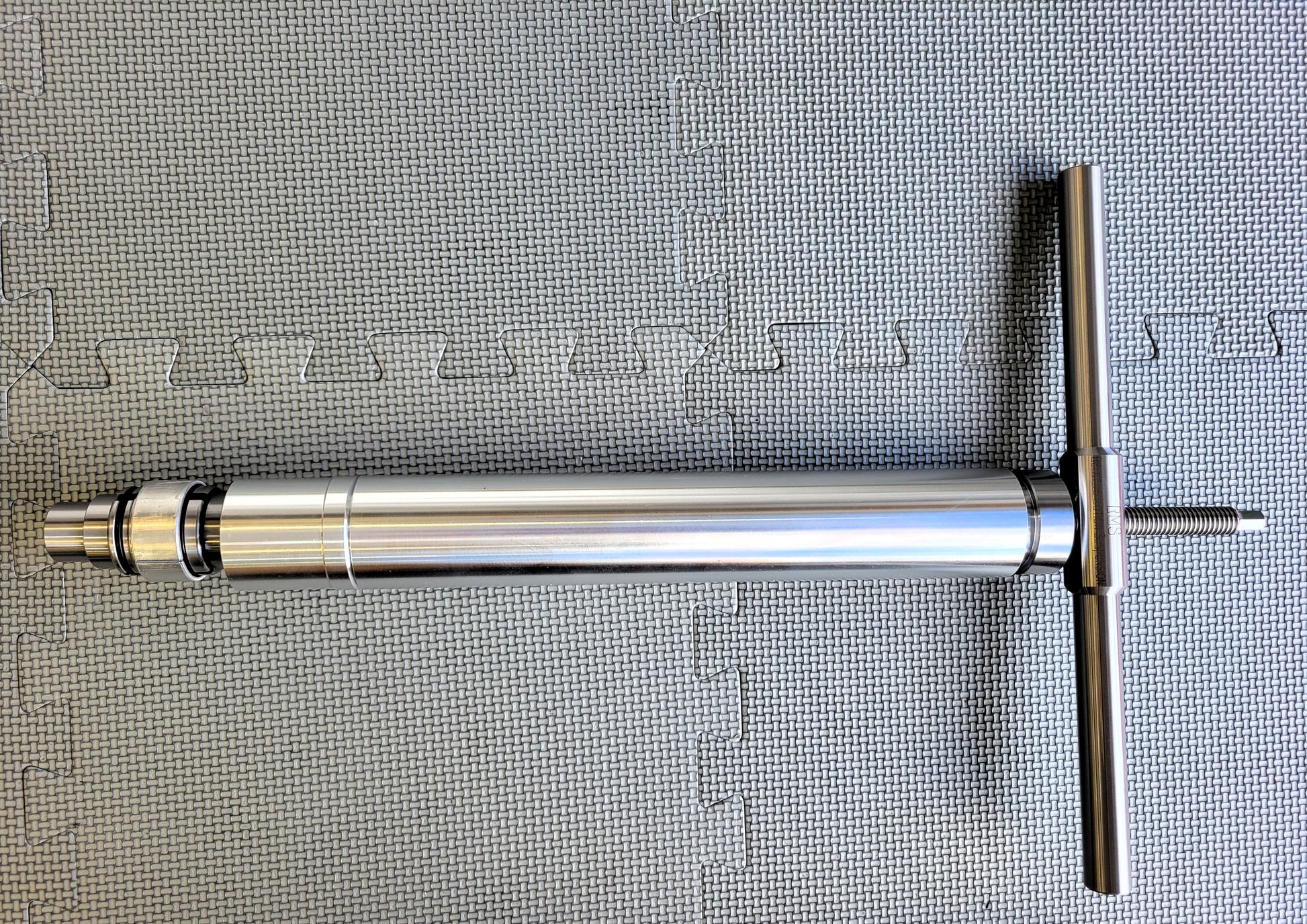 Need to install new bushings in a fork? Messing around with cobbled together washers attached to all thread and putting hammers anywhere near suspension is a recipe for disaster. Forks are precision pieces of engineering and could easily be damaged by low quality tools. Our fork bushing removal and installation tool gently presses old bushings out, and new bushings in by eliminating the use of sketchy tools and hammers that could easily damage the fork. Don't like tools with crunchy and vague feeling operation making it hard to know what is going on? Same, so we gave this tool a trapezoid thread form main screw and an enclosed needle thrust bearing to keep dirt out and provide superbly smooth action with incredible tactile feel during use.